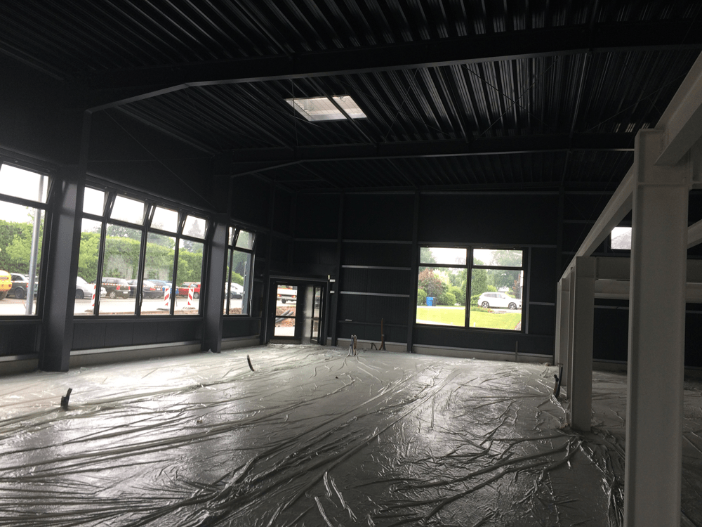 Nach dem die Pläne übergeben wurden, machte man sich an die Planung und Kalkulation. Bei diesem SEITZ Gebäude handelt es sich um einen Baukörper mit etwa 20 Meter breite und 80 Meter länge. Die neue Halle wird für das „Effectiv – Gesundheits- und Fitnesscenter“ halbiert. Im hinteren Bereich entsteht die neue Produktion der Firma Seitz. An der Frontseite der Halle ragt der Eingang mit einem Vorbau wie eine Schleuse hervor. Dadurch gibt es beim öffnen der Türen nie Zug oder Kältebrücken. Danach kommt der Fitness- und Gesundheitsbereich, welcher die Hälfte der Halle bis zur offenen Hallendecke von über 4,50 Meter einnimmt.